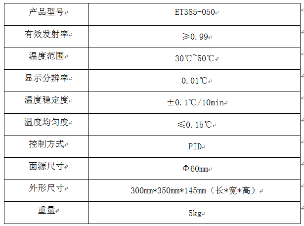 1、概述 E385-050便携式黑体辐射源主要用于现场对红外耳温枪、红外额温枪、以及红外体表筛查仪、红外成像测温仪等进行实时校准,消除红外测温系统受现场复杂环境所产生的误差,能有效的提高测量精度,提高红外测温系统的可靠性,降低检错率。 2、功能特点