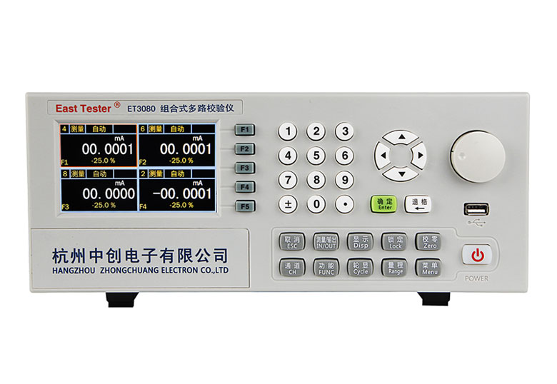 组合式多路校验仪ET3080是一款开放式、创新型的台式校准仪器。它采用1台主机+信号模块(最多可达8路)的工作模式,各路信号间完全隔离、可同时使用。有效地实现了客户按需选择、避免浪费和随时的功能扩充,可最大限度的满足客户的需求。多种通讯方式(支持Rs232、Lan、Usb)可满足客户各种不同的应用需要。 本产品的问世,有效解决了目前市场上的校准仪器功能固定、局限性大的问题,用户根据自己的需要、选配不同的信号模块,可以自由组合出一台符合实际应用的产品。