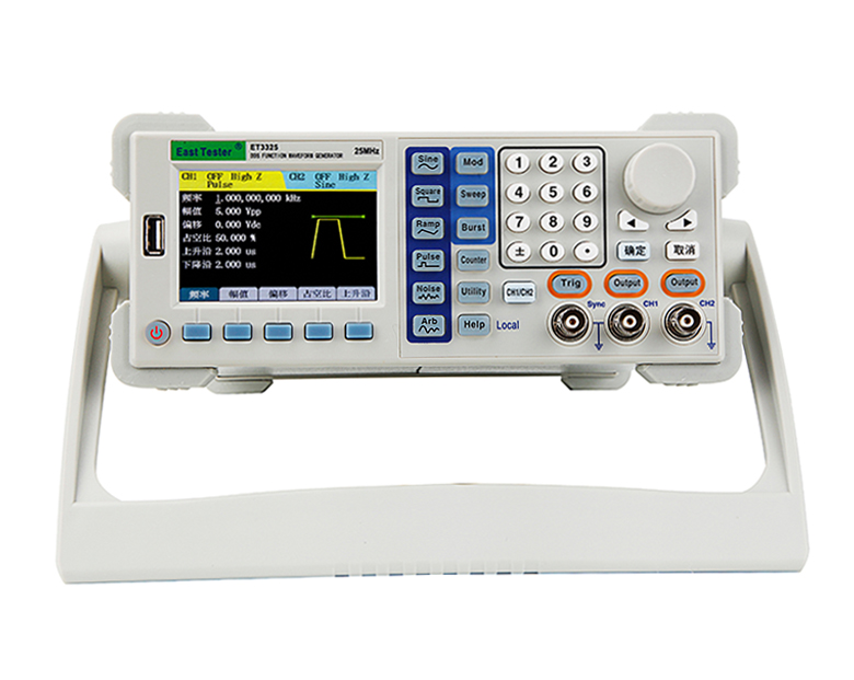 正弦波,方波,三角波,脉冲,噪声,任意波(含DC)。 其中任意波有32种,还有50种用户自定义波形。 |